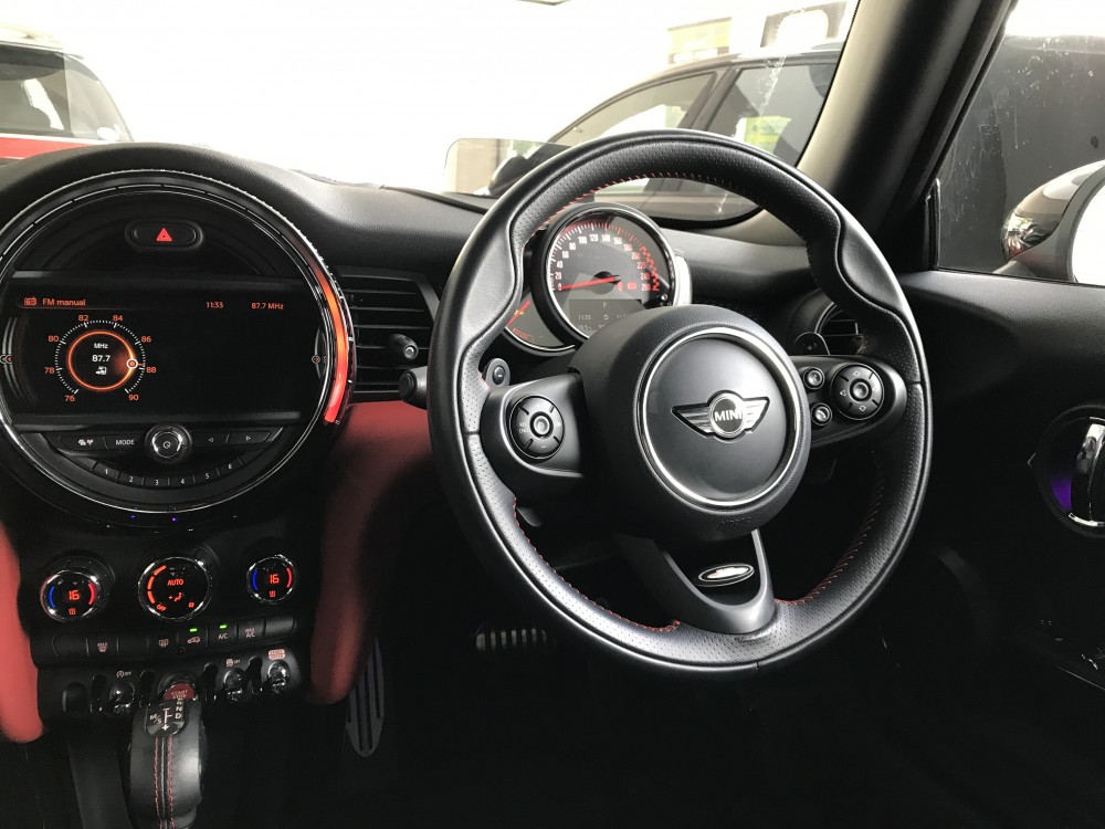This Chilli Red Cooper hatchback turbocharged has automatic transmission and a fantastic specification with many optional extras added. Body Type: Hatchback Transmission: Automatic Mileage: 38000km Engine Capacity: 2000cc Color: Red Year: 2017 Seat Capacity: 4 This car comes with: Actual Spec Genuine Year Made MINI Japan Spec MINI Driving Modes MINI TeleServices MINI Connected MINI Navigation System MINI Excitement Pack MINIMALISM Fuel Saving Technology Apple Car Play HUD I-Drive Performance Control Brake Calipers with John Cooper Works Lettering John Cooper Works Leather Steering Wheel John Cooper Works Aerodynamic Kit John Cooper Works Spoiler John Cooper Works roof spoiler John Cooper Works sport seats Multi-function controls steering wheel Sport suspension Comfort Access System DAB digital radio Active Pedestrian Safety Air Conditioning - Manual Anthracite Headlining Automatic Door Window Lowering by Approx 6mm When Door Opens Boot Release via Remote Control Colour Line - Carbon Black DTC - Dynamic Traction Control with EDLC - Electronic Differential Lock Control Dynamic Stability Control - DSC Engine Scoop in Body Colour Exhaust Tailpipe - Visible Double Round Central with Chrome Finishers Front Side Indicators - White Heated Rear Window with Automatic Deactivation Heated Window Heater Intelligent Emergency Calling - E-Call Interior Mirror - Mechanical Anti-Dazzle Interior Surface in Black Chequered Design Interior Trim - Black Chequered Locking System with Central Locking Personal Profile Power Steering with Servotronic Radio with Four-Line Display Rear Fog Light Side Scuttles Chrome-Plated with John Cooper Works Logo with Integrated Direction Indicator White Start-Stop Button with Keyless Start Storage Options TPWS - Tyre Pressure Warning System Twin Horns White Direction Indicators Lights LED Headlights and Daytime Running Lights and Tail Lights Bluetooth Hands Free Function with USB Audio 18" Alloy Wheels